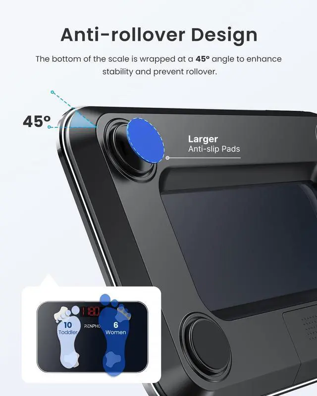 Portable & Travel-Friendly: Compact travel scale (11.02" x 7.09") that packs easily into a backpack, suitcase, or RV for business trips or vacations. Four non-slip pads keeps it stable on any hard surface, so you get reliable readings with no tipping, no worries, wherever you go