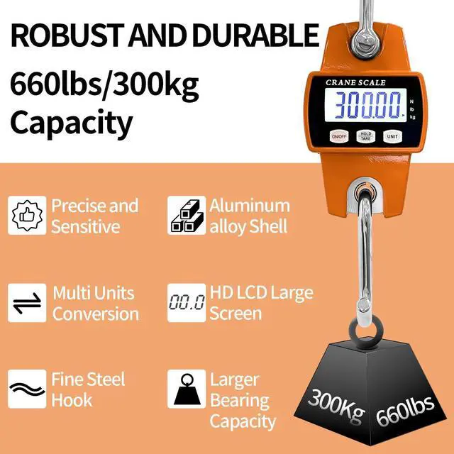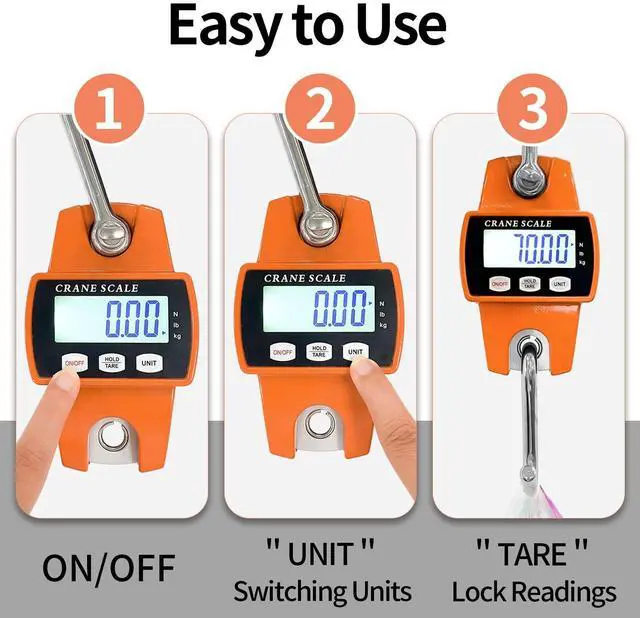 With compact size and 1.5lbs weight, you can carry the handheld scale almost anywhere to use, perfect for weighing deer, fish while hunting or fishing, and suitable for farming, garage, workshop, household, postal shipping and more.