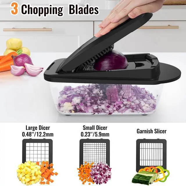 • Game Changer for CookingThis 8-Blade All in One vegetable chopper makes slicing, dicing, and chopping quick and effortless, its a time saver and game changer for how you prep food in the kitchen.