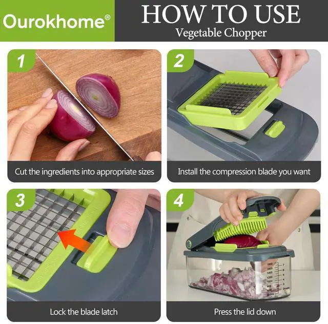 The onion chopper is equipped with a blade lock design to enhance safety during use. This innovative feature effectively prevents accidental sliding of the blades, ensuring secure operation while chopping and facilitating convenient blade replacement