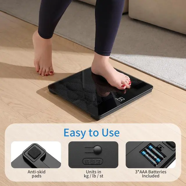 Amazing 660lb Smart Bathroom Scale for Body Weight in 0.1lb, High Accuracy Assured by Scale Professional Factory Since 2001, Large Platform with 8mm Non-Slip Tempered Glass, LED, 3*AAA, Black