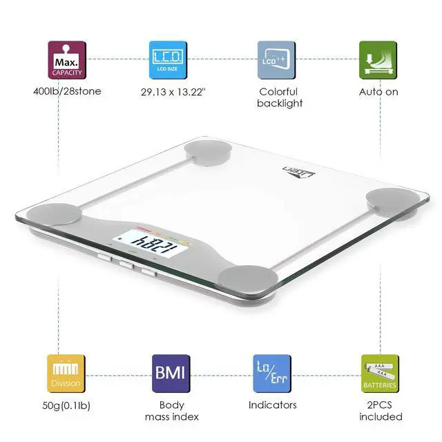 Our BMI smart bathroom scale is with BMI function, you can know your weight and BMI just with one scale. Built-in four high precision sensors to instantly deliver trustworthy results with a 0.1 lb accuracy resolution to give you professional results.