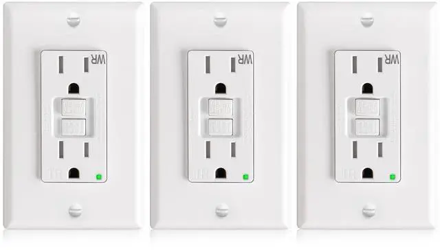 Amico 3 Pack GFCI Outlet 15 Amp with Thinner Design, Weather Resistant (WR), Self-Test GFI Receptacles with LED Indicator, Wall Plates and Screws Included, Indoor or Outdoor, ETL Listed, White