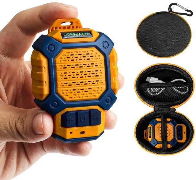 Improved Strong Clip: Enjoy the music wherever you're headed. This clip on mini bluetooth speaker can be attached to your shirt, backpack, or jacket via unbreakable and durable clip. You can also thread a line through the clip's hole and hang mini bluetooth speaker around your neck.