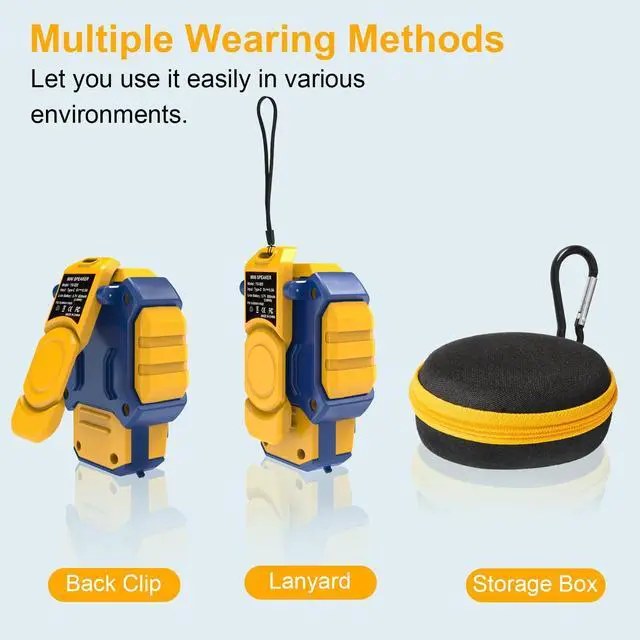 Clip-On Design: Enjoy ultimate audio convenience with wearable speaker's compact, egg-sized design. Weighing less than 2 ounces (50% lighter than a smartphone!), this clip-on tiny speaker disappears on your collar yet delivers big sound. Its clip locks securely to belts or metal surfaces perfect for construction sites, gym, trail runs or messy DIY projects where bulkier speakers get in the way.