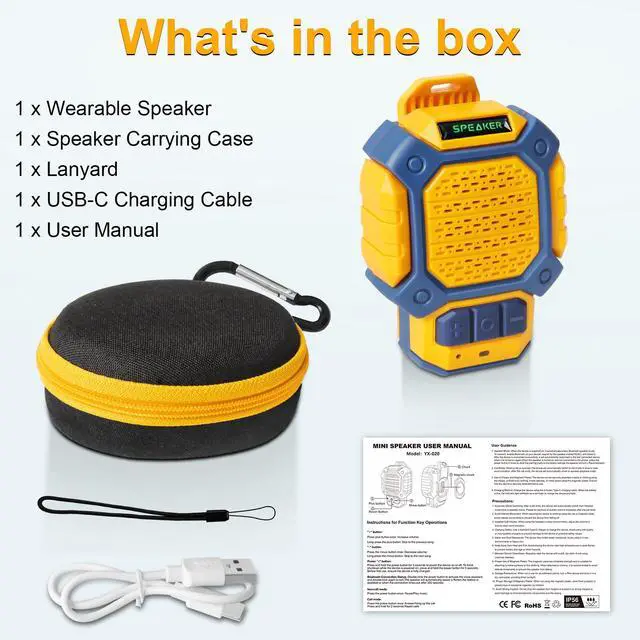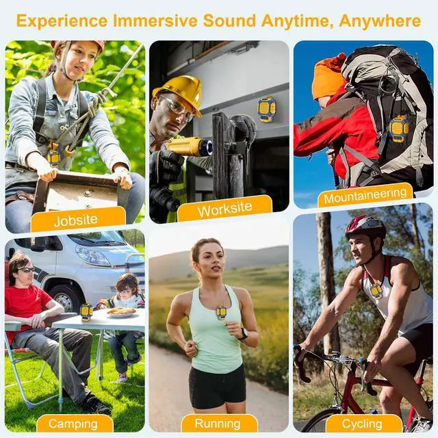 Tough and Weather-Resistant: Engineered to handle rough use and adverse weather conditions, this neck small speaker features a durable design and an IP56 rating for protection against water splashes and spills. It's an ideal choice for outdoor events, and is perfect for use at parties, at the pool, on the beach, while camping or hiking, and more. Wherever you go, your music followsprotected from water, dust.