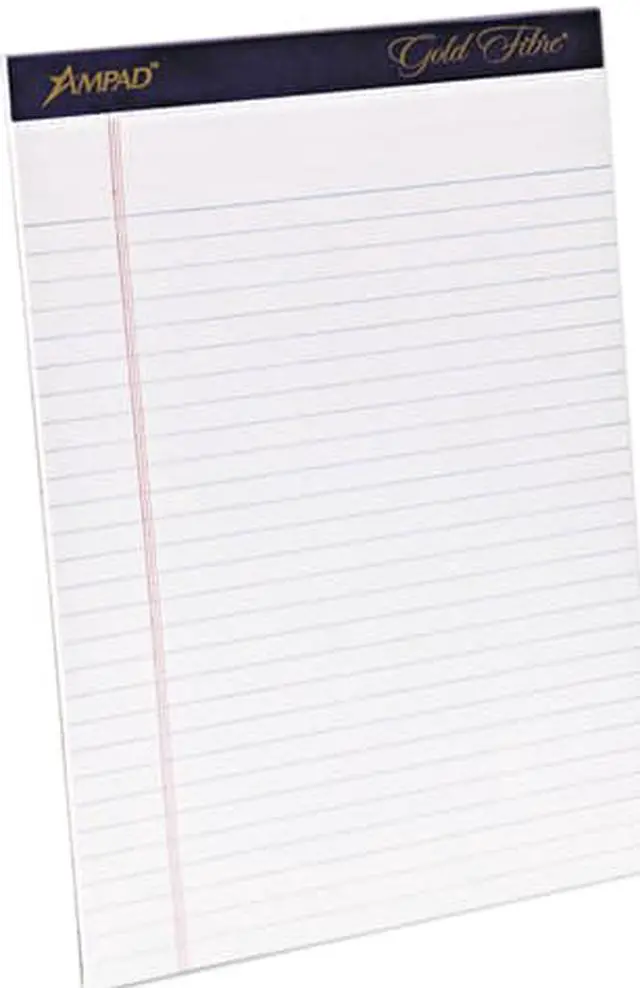 Ampad/Div Of Amercn Pd/Ppr Gold Fibre Writing Pads, Legal/Wide Rule, Ltr, White, 4 50-Sheet Pads/Pack