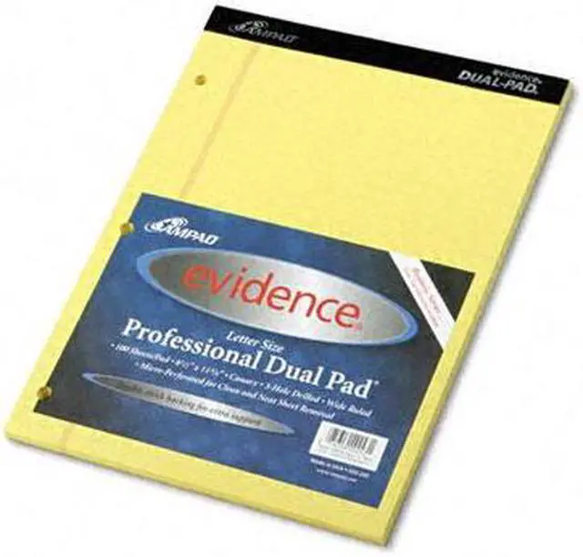 Ampad 20-243 Evidence Dual Ruled Pad, Legal/Wide Rule, 8-1/2 x 11-3/4, Canary, 100 Sheets