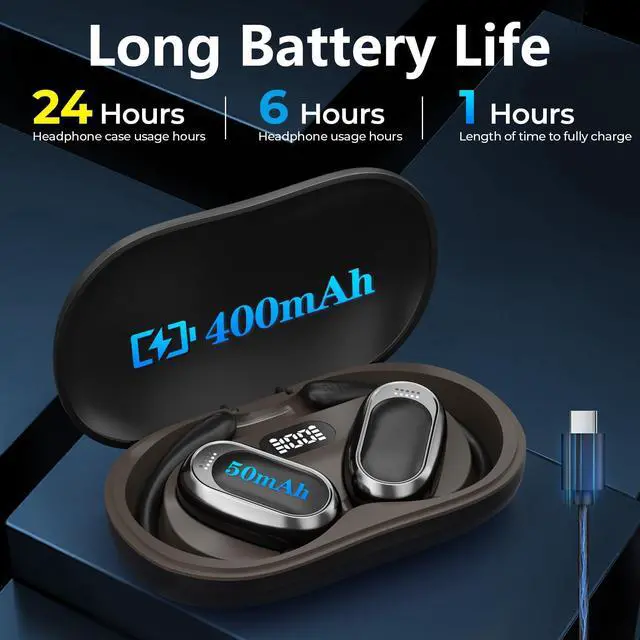 [Long Battery Life & Ergonomic Comfort] Designed for all-day wear, these over ear earbuds provide 24 hours of continuous use with audífonos traductores en tiempo real and a fast-charging case for extended battery life, The earbuds have touch control, supporting play/pause, song switching, volume adjustment, etc. The battery box has a power display, which is more convenient to use