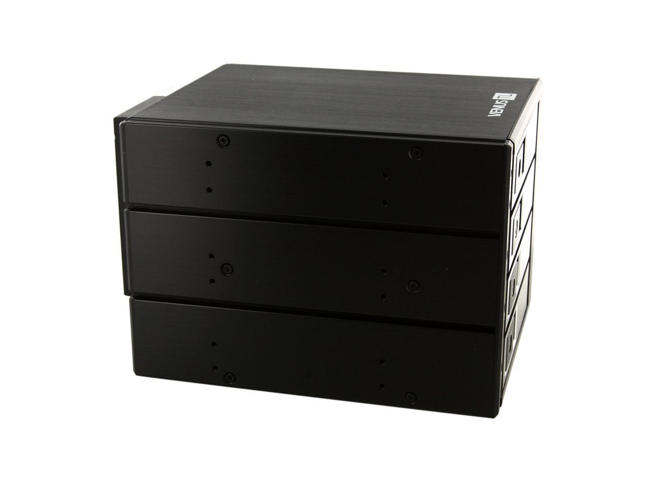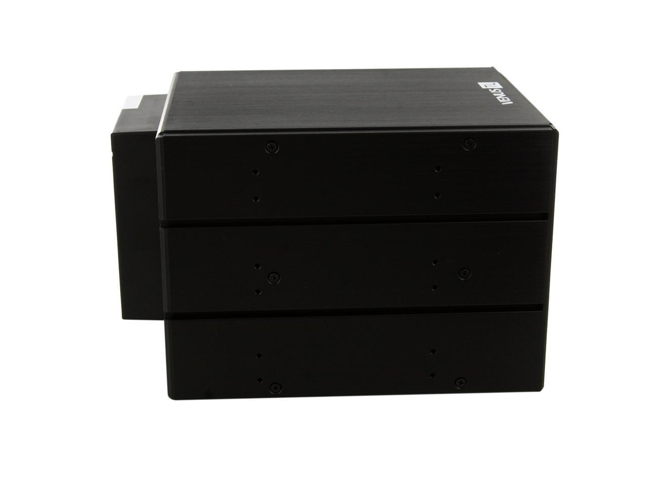| Specifications | Capacity: 3TB or above Host Interface: SATA or SAS Disk Interface: SATA I / II / III Interface Transfer Rate: up to 6 Gbps Form Factor: 3 x 3.5" bay (4 in 3) Indicator: LED power and HDD access (blue) Power: 15Pin SATA x 2 power and 7Pin data x 4 connector Operating Temperature: 5 to 35 Degrees C Material: Aluminum Frame and placstic bezel Dimension: 7.79" x 5.71" x 4.96" Weight: 1.9 lbs. |