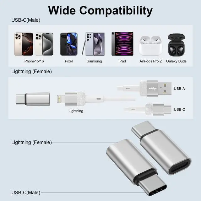 ![Main image of 3Pack [Apple MFi Certified] USB C to Lightning Adapter for iPhone 17e 17 Air Pro Max 16e 16 Pro Max Plus 15,USB Type C to Lightning Cable Adaptor Fast Charging & Data Sync, Not for Headphone/Audio/OTG](https://c1.neweggimages.com/productimage/nb640/C688D2604210UFECS11.jpg)