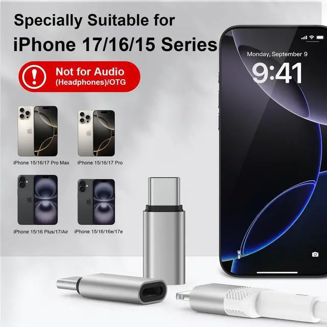 1.NOT for audio. NOT support OTG video and audio functions. Charging and data transfer ONLY. 2.NOT compatible with headphones, Appl e Pencil, flash drives, card readers, square reader, u disk, mice, microphones, keyboards, cameras, Hubs, HDMI converters, or printer.