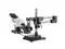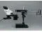 Head: 45 degree inclined 360 degree swiveling binocular. Eyepiece: 30mm super widefield high-eyepoint WF10X/20. Objective: 0.35-9.0X. Auxiliary Objective: 0.5X & 2.0X. Zoom Range: 26:1. Diopter Adjustment: +/-5dp. Interpupillary Distance: 2-3/16" - 2-15/16"(55-75mm). Working Distance: 4" (100mm). Boom Stand: 20" double-arm (overall length: 30"), 17" high pillar, 10-1/4"x8-1/4"x2-0" solid cast steel base. Illumination: 12-Watt fluorescent ring bulb, 110V (220V version available). Accessories: eye-guards. Packages: 2. Weight: 65 (55+10) lbs.