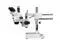 High-eyepoint eyepieces ease viewing for users who wear glasses, and dioptric adjustment accommodates individual eye-strength differences. A stereo microscope, sometimes called an inspection or dissection microscope, has low magnification and a long working distance that enables users to manipulate the object being inspected. Ambient lighting illuminates the specimen, eliminating the need for power or batteries. The microscope has a double-arm boom stand that enables users to position the microscope head on all three axes (X, Y, and Z). Bilateral focus eases use for left- and right-handed users. The stand has 20" double arms, and a 30" overall length.