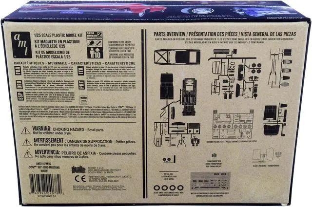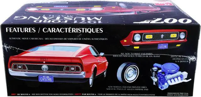 Brand new 1/25 scale plastic model kit of 1971 Ford Mustang Mach 1 (James Bond 007) "Diamonds are Forever" (1971) Movie (Skill 2) 1/25 plastic model kit by AMT.