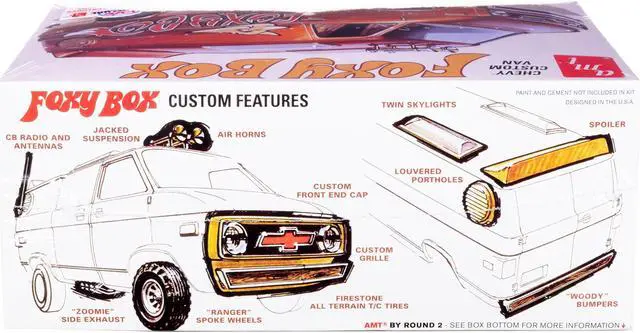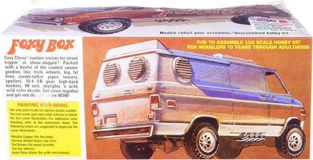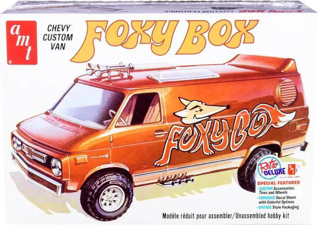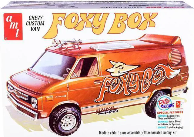 Brand new 1/25 scale plastic model kit of Chevrolet Custom Van "Foxy Box" (Skill 2) 1/25 plastic model kit by AMT.