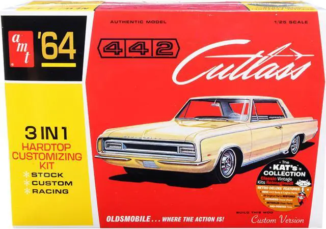 Brand new 1/25 scale plastic model kit of 1964 Oldsmobile Cutlass 442 Hardtop 3-in-1 Kit (Skill 2) 1/25 plastic model kit by AMT.