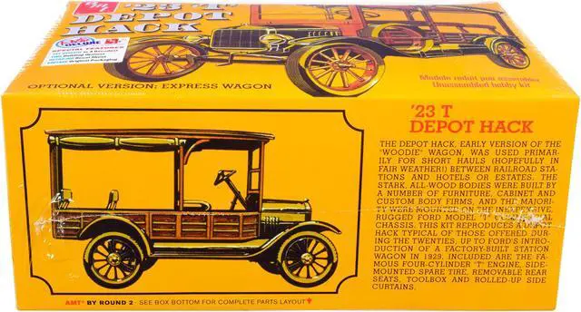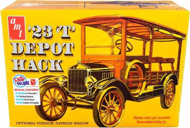 Brand new 1/25 scale plastic model kit of 1923 Ford T Depot Hack 2-in-1 Kit (Skill 2) 1/25 plastic model kit by AMT.
