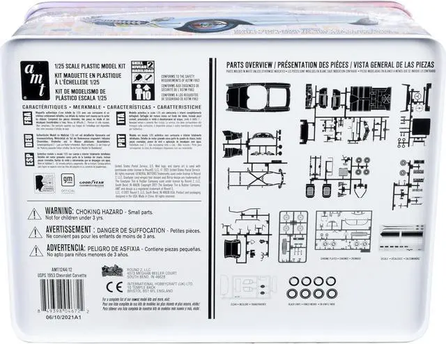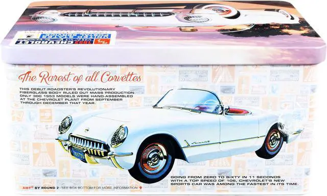 Brand new 1/25 scale plastic model kit of 1953 Chevrolet Corvette "USPS" (United States Postal Service) Themed Collectible Tin (Skill 2) 1/25 plastic model kit by AMT.