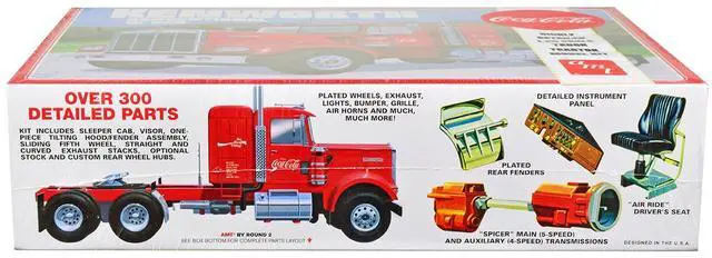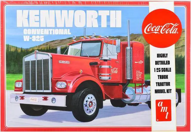 Brand new 1/25 scale plastic model kit of Kenworth Conventional W-925 Tractor Truck "Coca-Cola" (Skill 3) 1/25 plastic model kit by AMT.