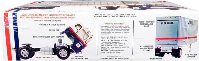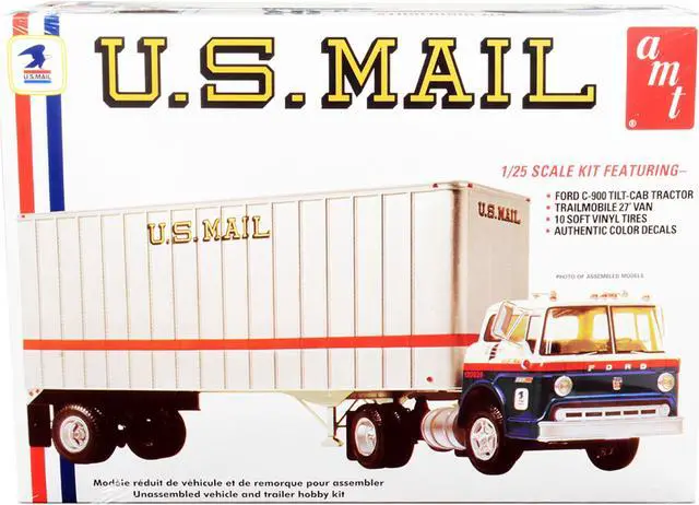 Brand new 1/25 scale plastic model kit of Ford C900 Truck Tractor with Trailer "U. S. Mail" (Skill 3) 1/25 plastic model kit by AMT.
