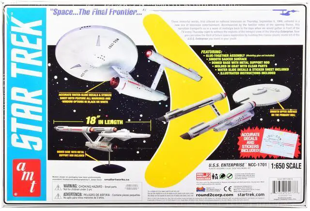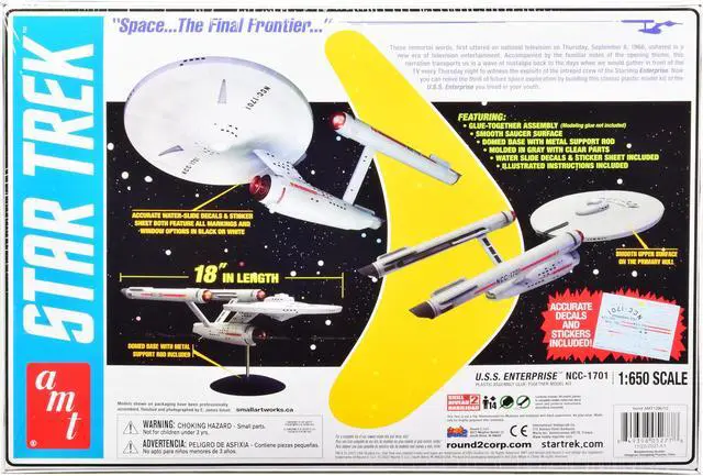 Brand new plastic model kit of U. S. S. Enterprise NCC-1701 Space Ship "Star Trek" (Skill 2) 1/650 plastic model kit by AMT.