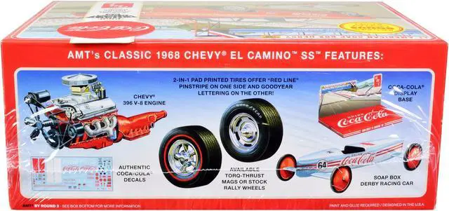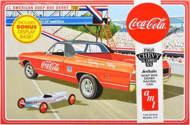 Brand new 1/25 scale plastic model kit of 1968 Chevrolet El Camino SS and Soap Box Derby Racing Car 2 in 1 Kit "Coca-Cola" (Skill 3) 1/25 plastic model kit by AMT.