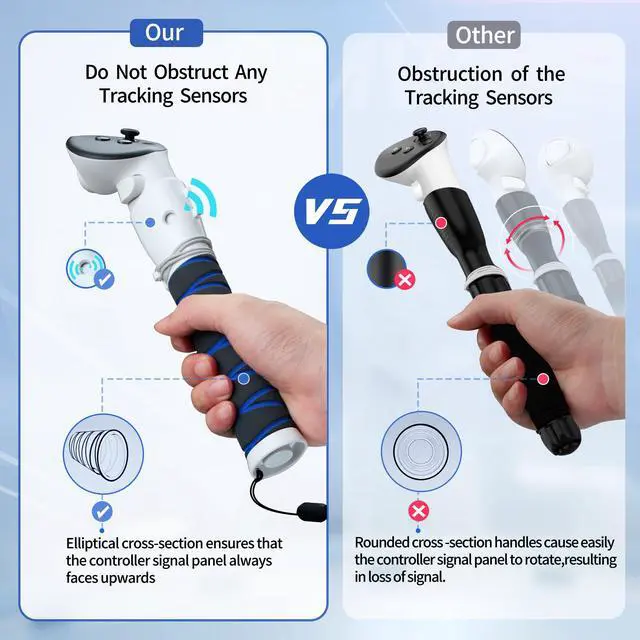 2.Innovative oval cross-section that ensures that the controller's sensor panel is upwards without losing the tracking signal;