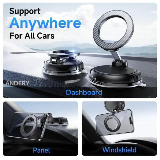 Car Phone Holder for Magsafe [78+LBS Strongest Suction & 2400gf Strongest Magnetic] 360° Adjustable Car Phone Mount, Phone Holders for Your Car for iPhone 17-12 Pro Max Air Plus (Carbon Fiber)