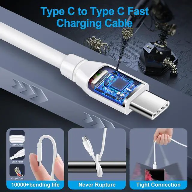 3.Fast charging type c charger iphone 15 charger cord built with high quality TPE material, smooth, flexible and soft to the touch, can withstand over 15000 bends, a perfect replacement for your original usb c to usb c iphone 17 pro charger cord