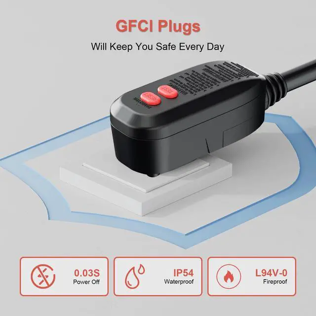 1. Although GFCI is a rainproof device, it is very important to keep the device far away from water.