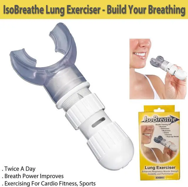 Angel Sales (ISOBREATHE) is a Compact Breathing Exerciser. Respiratory trainer it's weight training for your breathing muscles! Introducing the iso breathe the world's number one selling respiratory trainer. Reduce shortness of breath with daily exercises for your lungs. Whether you're into sports and looking to supercharge your breathing muscles or maybe you suffer from a medical condition such as asthma (ISOBREATHE) is a highly effective inspiratory muscle trainer providing an easy and convenient means of increasing the strength and durability of the respiratory muscles. It works on the principle of resistance. As you inhale the resistance created makes your respiratory muscles work harder and the harder they work the stronger and more durable they become and as your breathing power improves the (ISOBREATHE) can be gradually adjusted to provide more resistance.