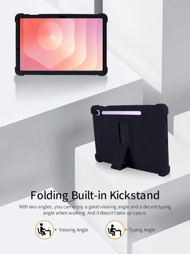 Protect your NEW Samsung Galaxy Tab S10 Lite 10.9 Inch Android Tablet. The durable silicone construction features reinforced corners and raised edges to guard against drops, bumps, and scratches. A convenient built-in kickstand allows for hands-free viewing in both landscape and portrait orientations. The case's textured wave pattern provides enhanced grip while the precise cutouts ensure full access to all ports, buttons, cameras, and speakers. The flexible material makes installation and removal quick and easy, while still maintaining a secure fit. Perfect for daily use, this protective case combines functionality with reliable device protection.