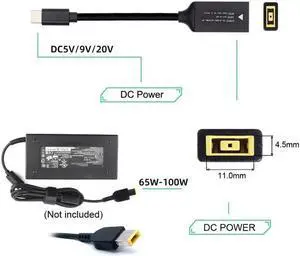 Rectangle Jack Thinkpad X1 Input to USB-C Type-C Power Plug Charge Cable for Laptop Phone PD9V 5V 20V