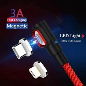 2m Magnetic USB Type C Charging Cable 90 Degree Led Micro Usb Cable Magnet for S20 Ultra Google Pixel 3A 4 Z6 Pro