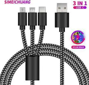 3 In 1 USB C cable 3A fast charging nylon braided charger for S10 Android phone Micro USB multifunctional fast charging