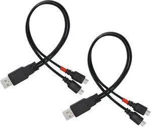 12 Inch Micro USB Splitter Cable USB 2.0 Type A Male to Dual Micro USB Male Y Data Charge Connector Adapter Cable