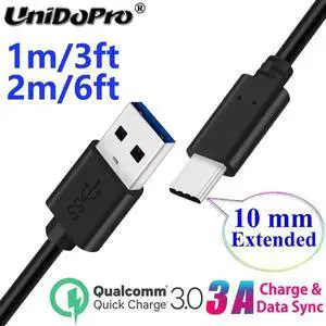 10mm Long USB-C Type C Extended Tip Fast Charger Cable for Ulefone Armor 9 7E 7 6S 6E 6 5 3WT 3W 3T 3 2S Power 6 5S 3S