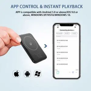 Digital voice recorder with magnetic attachment, intelligent noise reduction, long battery life and large capacity. Ideal for classroom and business conference recordings.