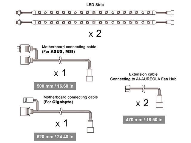 - Also fit for anidees AI-AUREOLA Fan Hub(optional) : AI AUREOLA Fan Hub is designed to connect anidees AR Fan and LED Strips, synchronize the lighting effects by RF Controller.