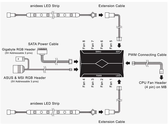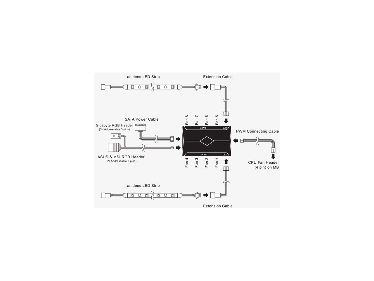 - Including RGB Fan x 5 and LED Strip x 2, controlled by RF remote control