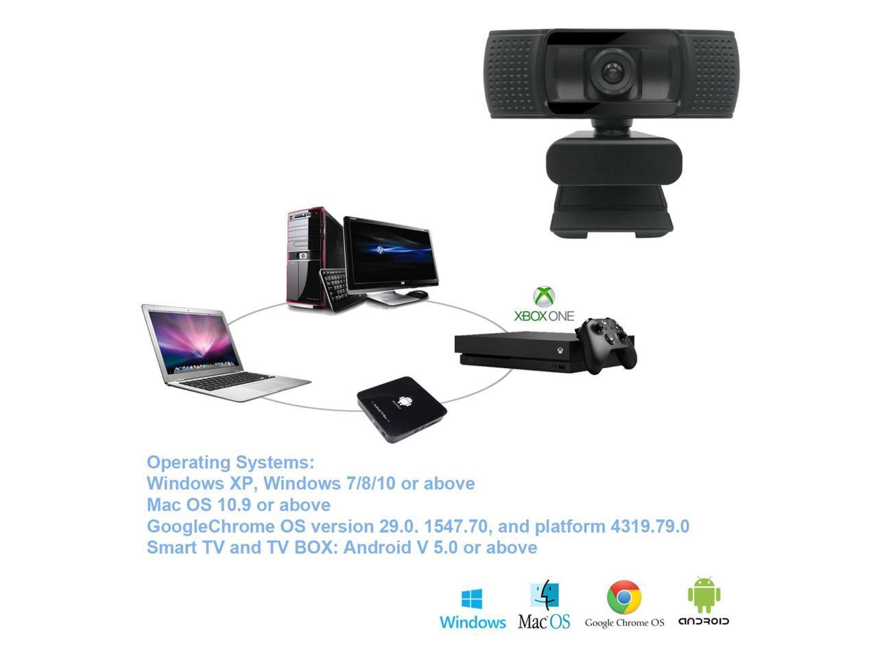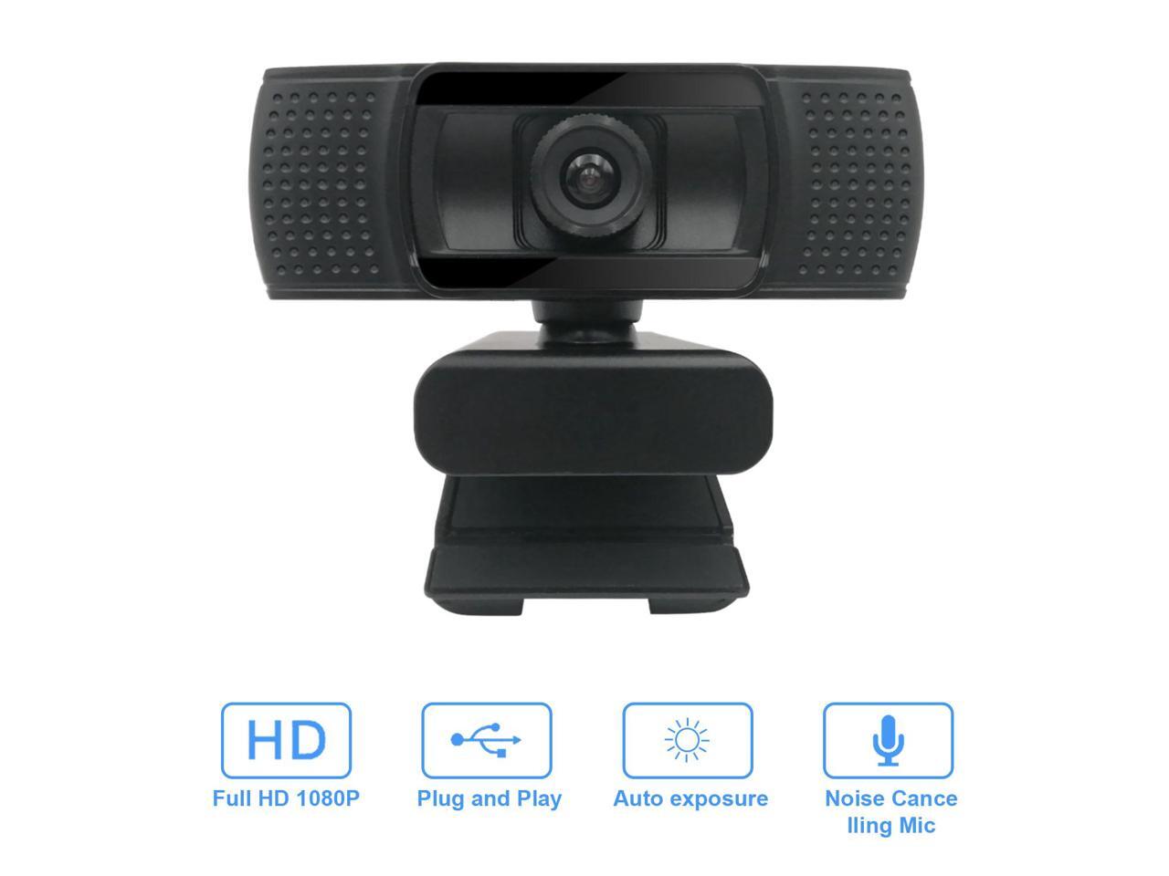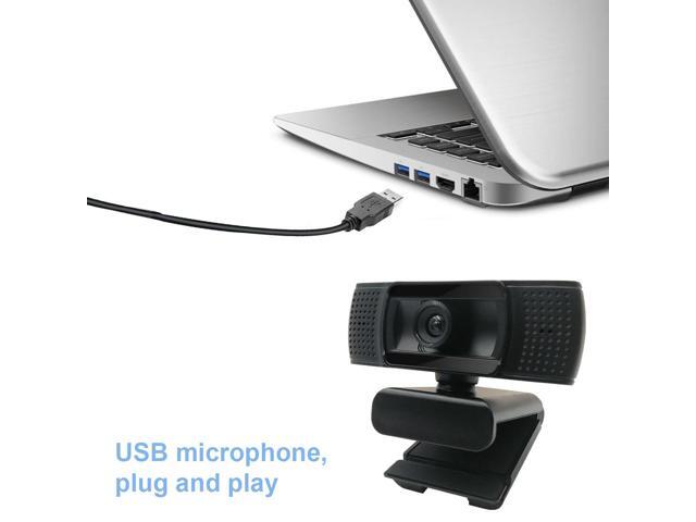 1080p HD Fixed Focus Webcam, USB Camera with Microphone Free Cover Slide, Mini Plug and Play Video Calling Computer Camera, Built-in Mic, Flexible Rotatable Clip(The Tripod not included)