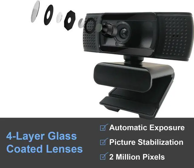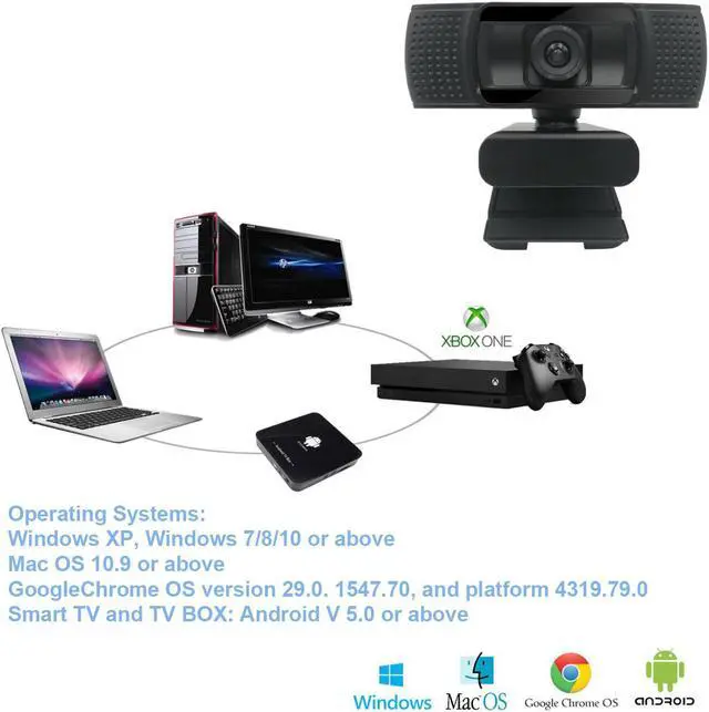 Fixed Focus 1080P HD Webcam USB port, Just Plug and