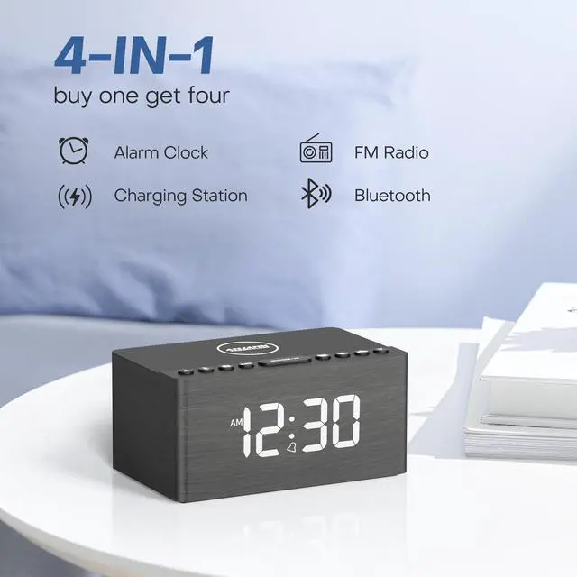 | Special Feature | Clock with Adjustable Brightness, Large Numbers Digital Clock, Crafted Wood Bluetooth Speaker, Wake Up to Your Favorite Radio Station, Sleep Timer, Qi Certified Fast Wireless Charger |