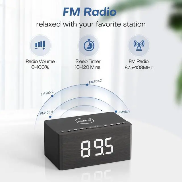 This clock radio features Bluetooth & Auto-sync Time function, it's an 2023 newest upgraded design, which allow you to connect it to your phone and play the musics you like. It's convenient!