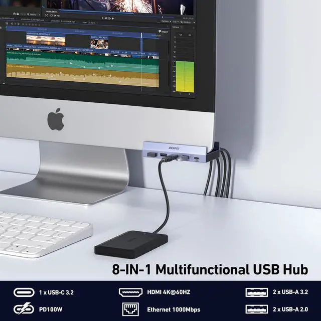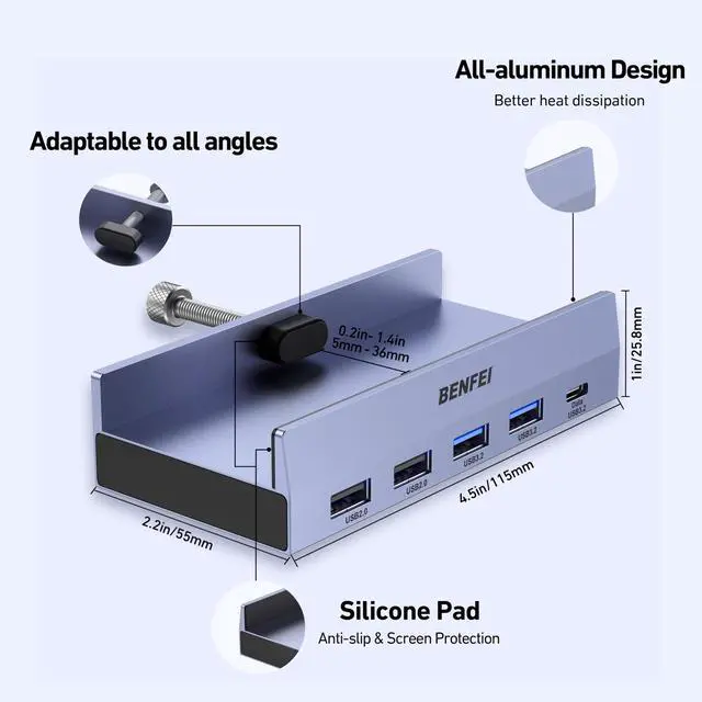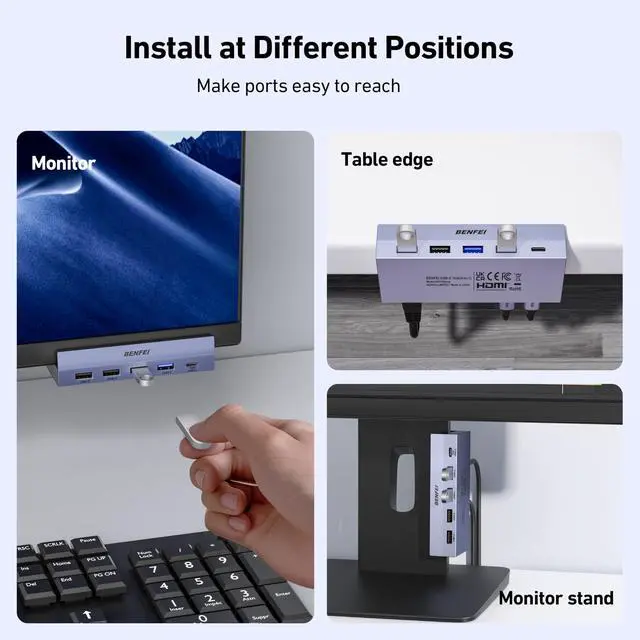 Keeps USB, HDMI, and other ports at eye level for quick plugging and use. It also prevents the hub from sliding or tipping over.