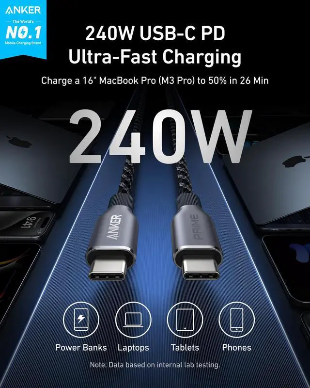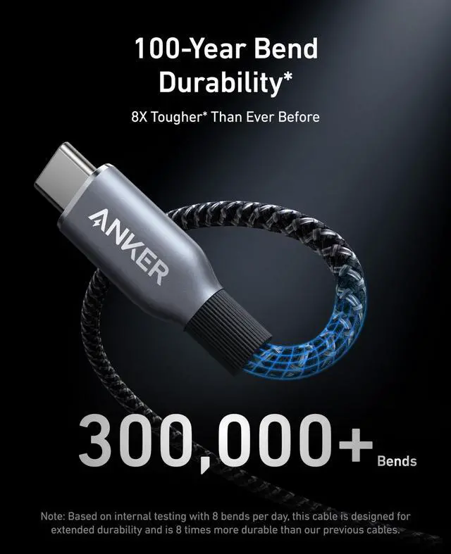 Model Number: A88E2 Anker Prime USB-C to USB-C Cable (3 ft, 240W, Upcycled-Braided), 100 Years of Unmatched Bend Durability