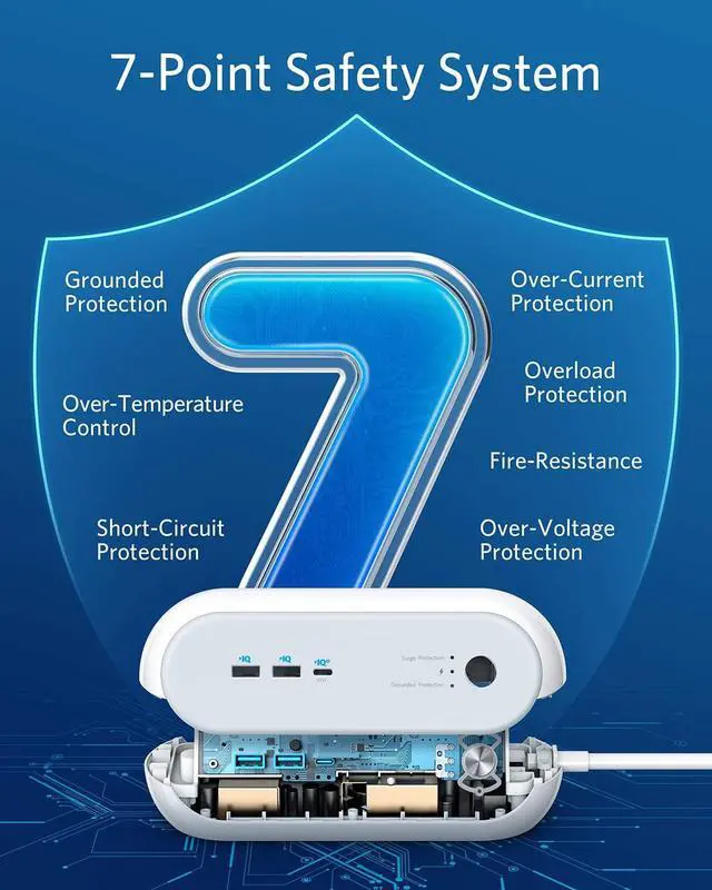 Integrating multiple layers of protections, PowerExtend USB-C 3 Capsule is a safe way to charge your phones, laptops, and other devices at high speed. One USB-C port supports 45W output while two USB-A ports support 15W output. Three AC outlets on the other side deliver safe power for electronics and appliances.