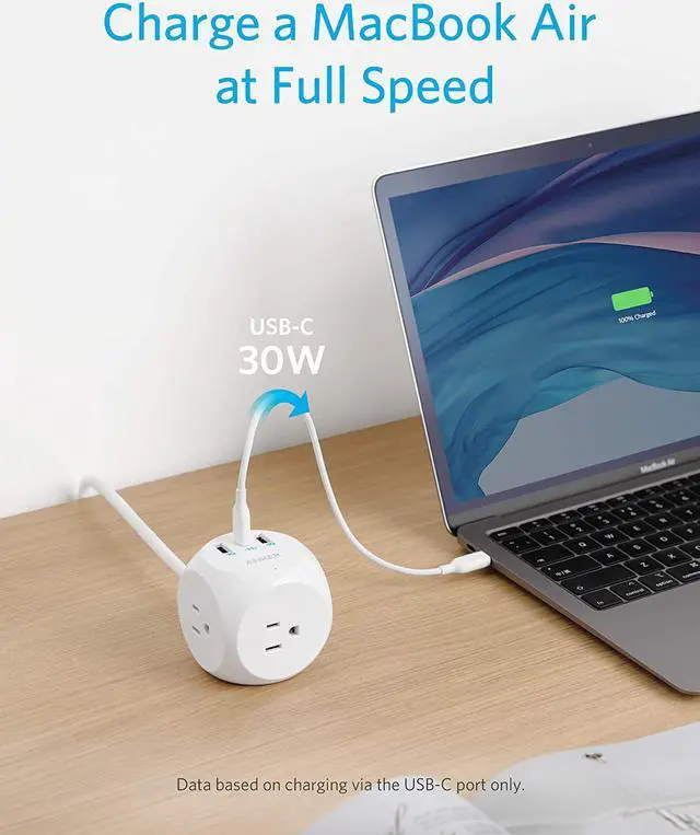 Connect your MacBook Air 2020 to the 30W USB-C port to get a full charge in the same time as with your original charger.