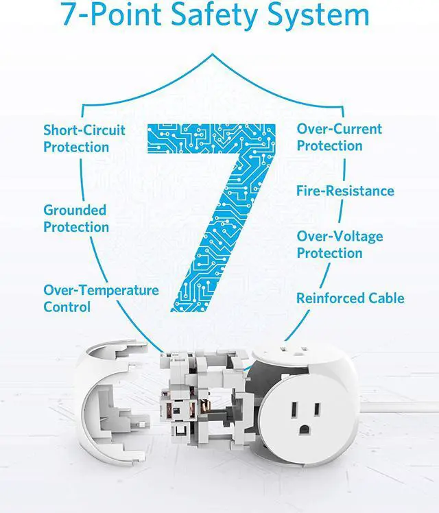 A thick rubber-coated power cable, fire-retardant casing, overload protection, and more combine to provide superior safety for you and your devices.